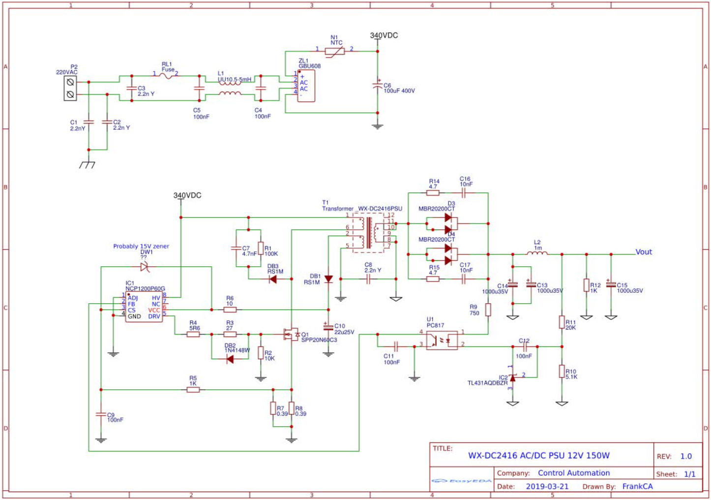 Jako napájecí zdroj pro oba kanály jsem použil spínaný zdroj WX-DC2416 100-265VAC/24VDC 6A, který jsem zakoupil za 290Kč.